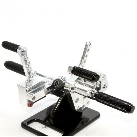 CALIBER CHROME PLATED BILLET FORWARD CONTROLS FOR HARLEY SOFTAIL 1986-99 BLACK PEGS